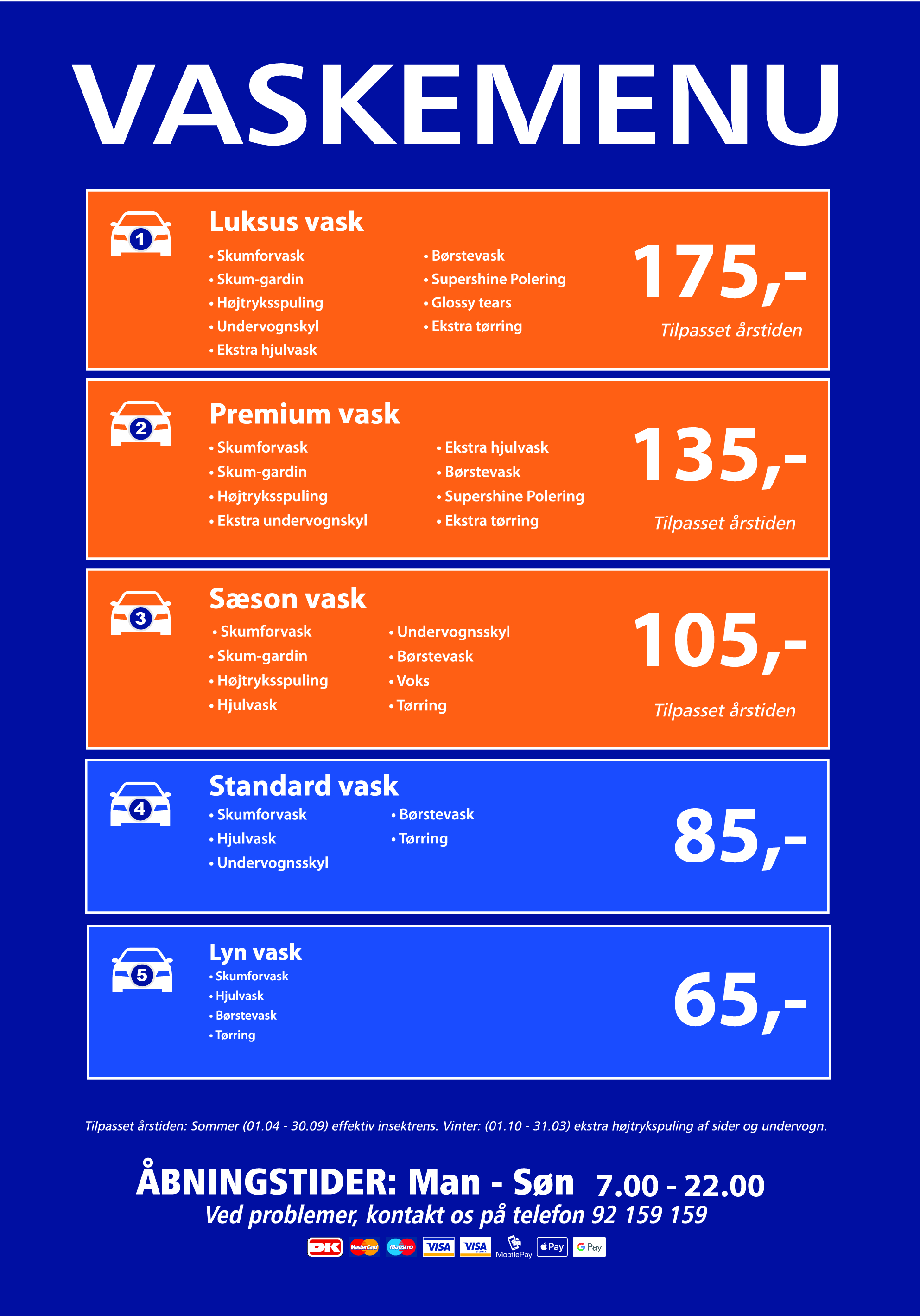Kom og besøg vaskehallen, få gode rabatter på vask i Vaskeklubben og eller med Vaskenøgle.